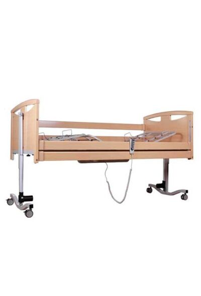 Πολύσπαστη ηλεκτρική κλίνη, με επένδυση ξύλου. Μεταλλικός σομιές με παράλληλες μπάρες υποδοχής του στρώματος. Η ανάκλιση της πλάτης και η ανύψωση των κάτω άκρων πραγματοποιούνται με ηλεκτρικό χειριστήριο το οποίο κλειδώνει, προς αποφυγή ατυχημάτων. Το συνολικό ύψος της κλίνης ρυθμίζεται ηλεκτρικά σε θέσεις επιλογής. Δυνατότητα ανεξάρτητης λειτουργίας των μοτέρ της μετώπης της κεφαλής ή των κάτω άκρων (“Trendelenburg/Anti-Trendelenburg Position”). Ξύλινα διπλά πλαϊνά ασφαλείας, αμφίπλευρα και αφαιρούμενα. Αναρτήρας ανύψωσης του ασθενή με δελτοειδή ρυθμιζόμενη λαβή. Εφαρμόζεται στον σομιέ. Θήκη εφεδρικής μπαταρίας 2x9V, σε περίπτωση διακοπής ρεύματος. Εύκολη μεταφορά στον χώρο, χάρη στους τέσσερεις τροχούς με φρένο, οι οποίο ασφαλίζουν ανεξάρτητα. Η κλίνη έχει τέσσερεις μεταλλικές υποδοχές σταθεροποίησης του στρώματος. Η συναρμολόγηση πραγματοποιείται εύκολα χωρίς χρήση εργαλείων.